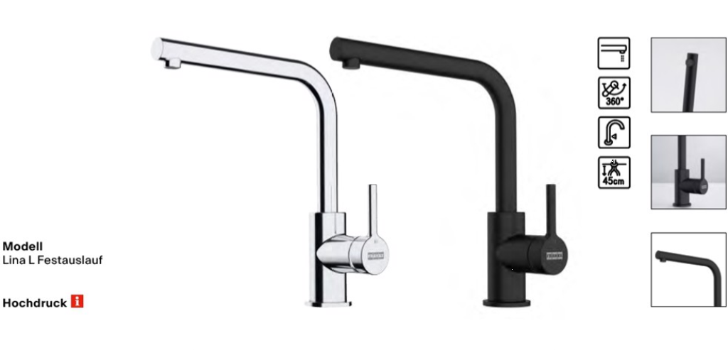 Einhebelmischer mit Festauslauf Hochdruck Küchenarmatur / Spültischarmatur Oberfläche: Black Matt