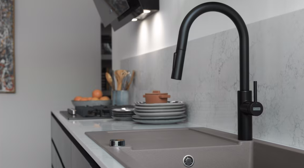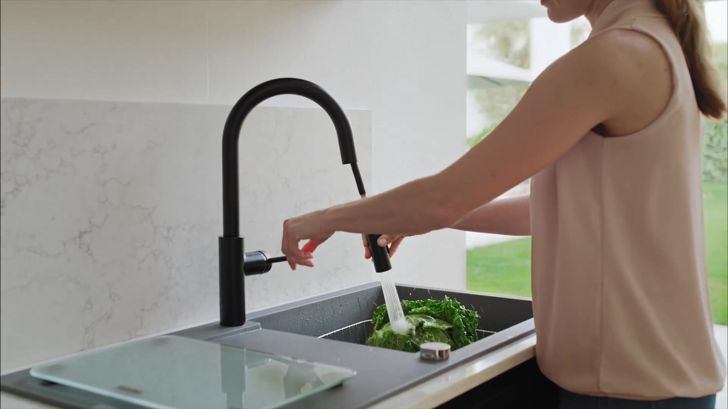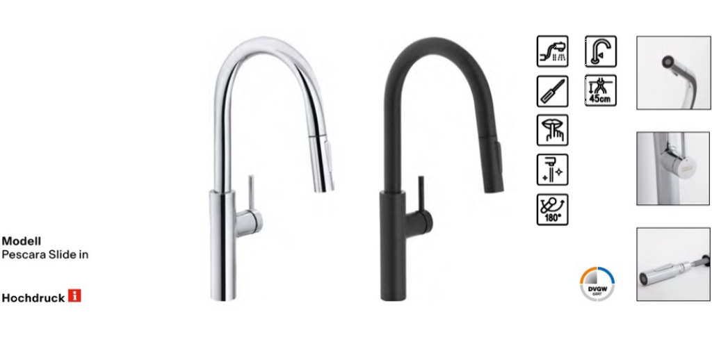 Einhebelmischer Pescara Slide-In Hochdruck mit herausziehbarer Schlauchbrause und Magnethalterung Oberfläche: Black Matt