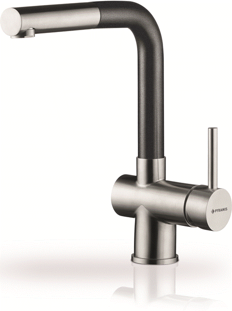 Einhebelmischer mit Zugauslauf Hochdruck Material: Edelstahl massiv/schwarz schwenkbarer Auslauf
