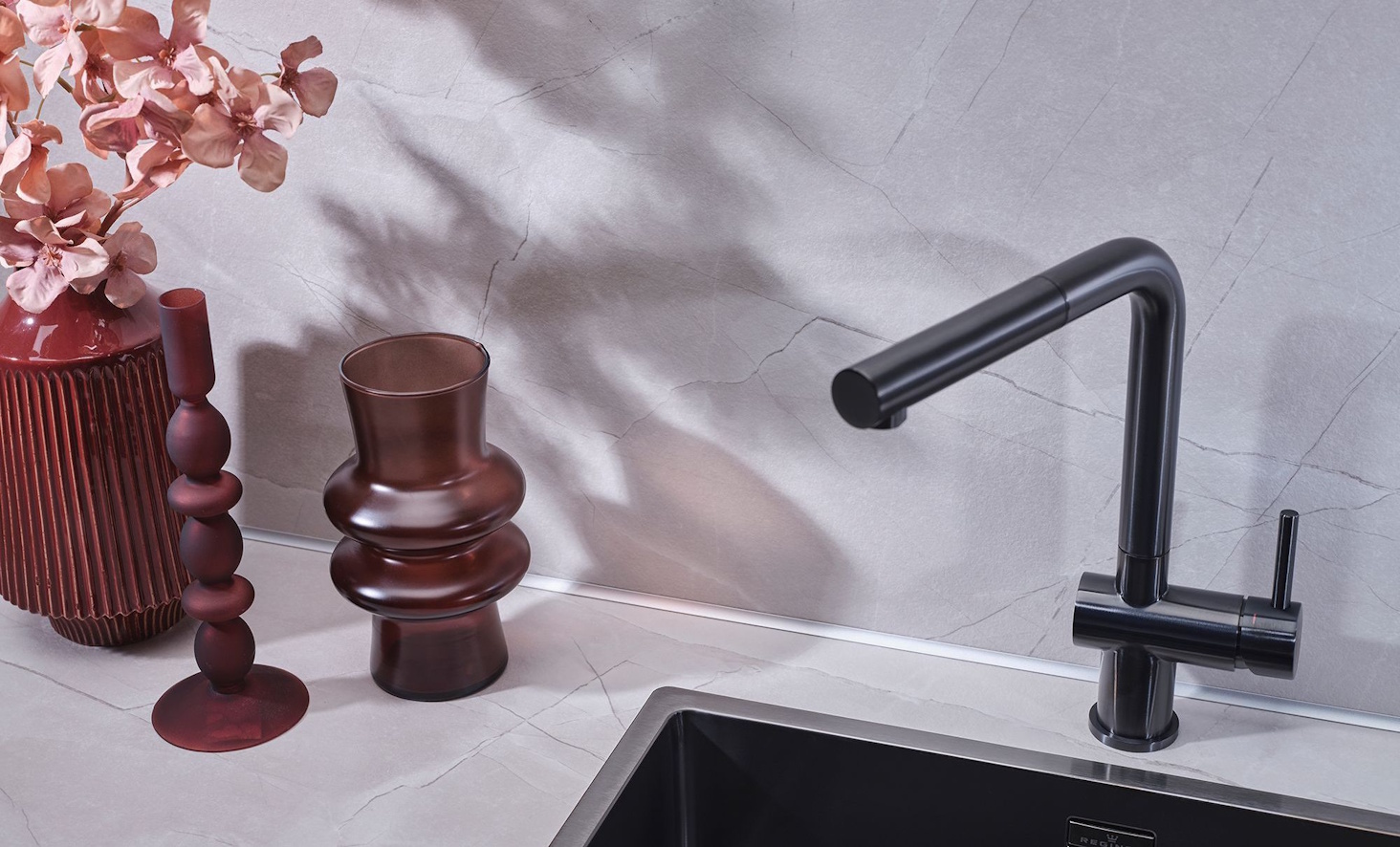 REGINOX Küchenarmatur Cedar II Gunmetal PVD (R38772) Einhebelmischer mit Zugauslauf 360° schwenkbarer Auslauf