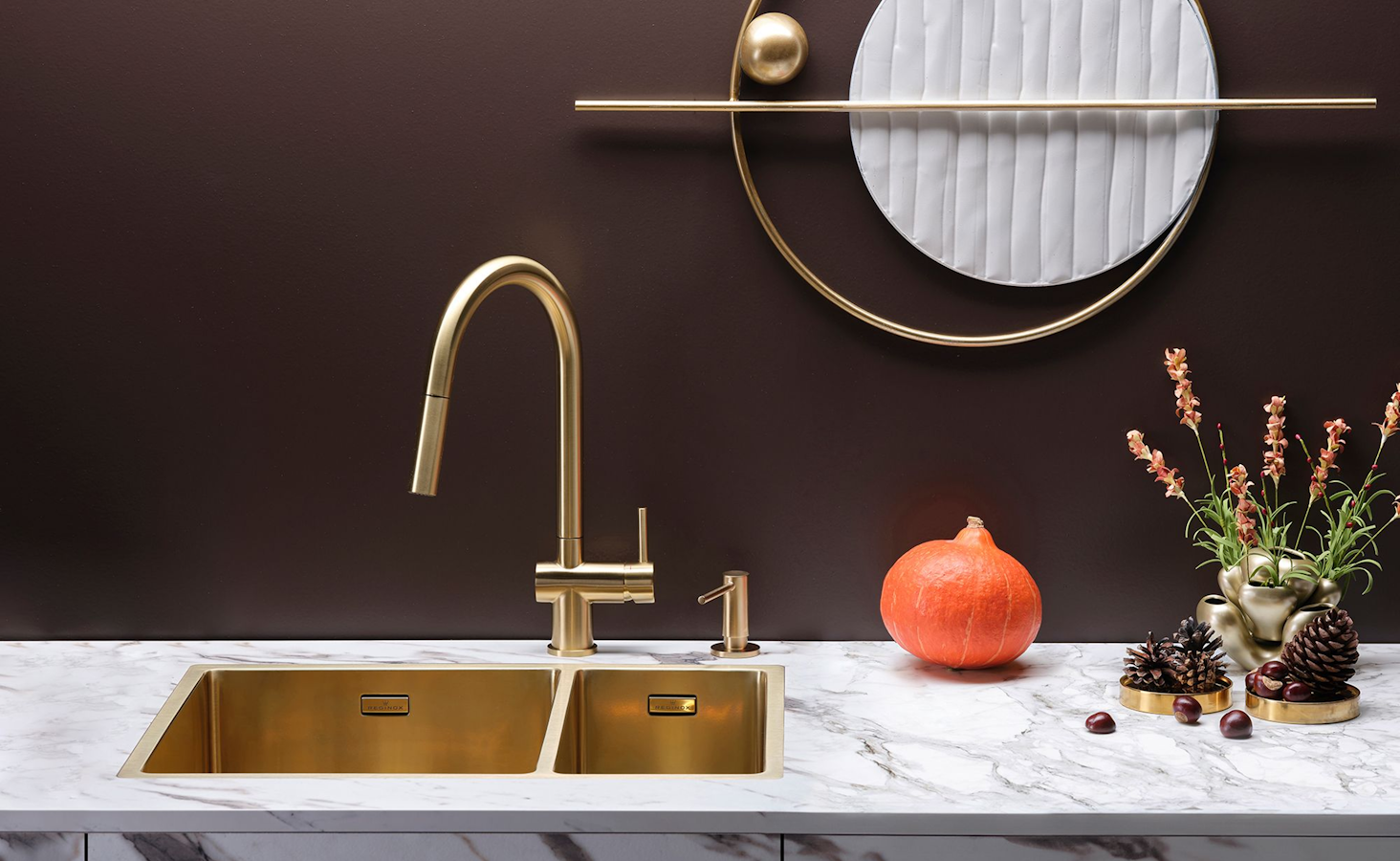 REGINOX Küchenarmatur Flint II Gold PVD (R38833) Einhebelmischer mit Zugauslauf als Schlauchbrause umstellbar 360° schwenkbar