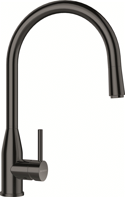 SCHOCK Küchenarmatur Kavus Gunmetal Einhebelmischer Schwarz glänzend mit Zugauslauf 360° schwenkbar mit Schlauchbrause