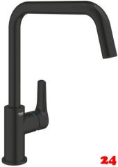 Einhebel-Küchenarmatur mit Festauslauf Hochdruck Schwenkbereich einstellbar in 3 Stufen auf 60°, 110° oder 360° Normalstrahl Oberfläche: Mattschwarz
