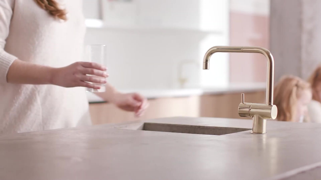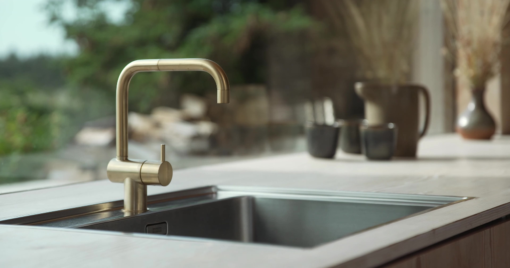 Einhebelmischer DN 15 Oberfläche: Messing poliert schwenkbarer Auslauf