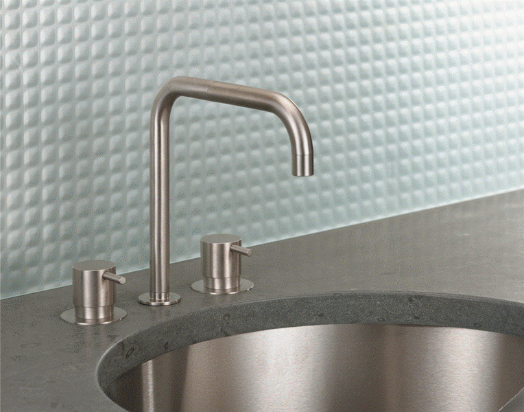 Dreiloch-Spültischbatterie mit Doppelschwenkauslauf DN 15 Oberfläche: Messing poliert schwenkbarer Auslauf