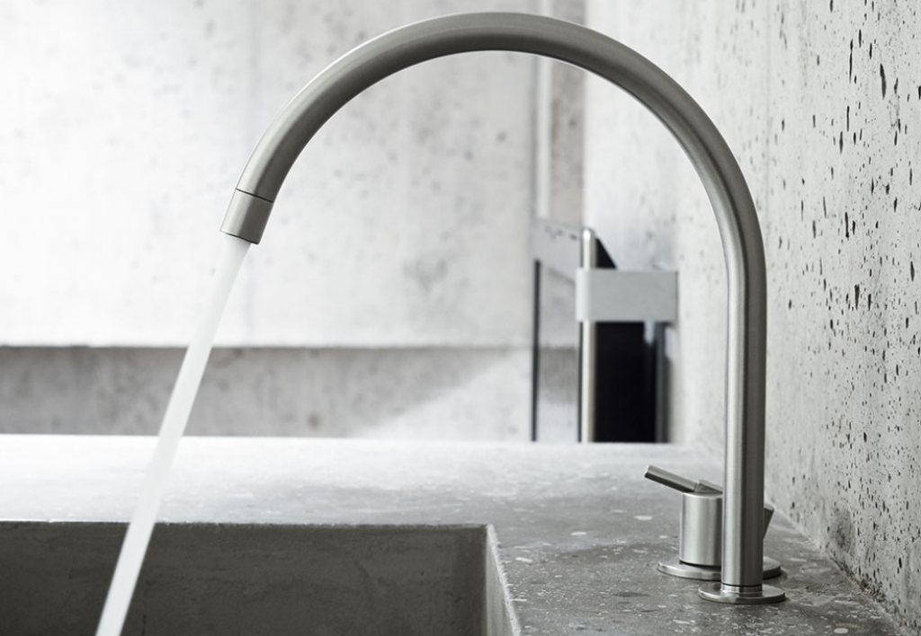 zur Montage in die Arbeitsplatte oder Spüle bequeme Druckbetätigung am Auslauf Oberfläche: Messing Patina