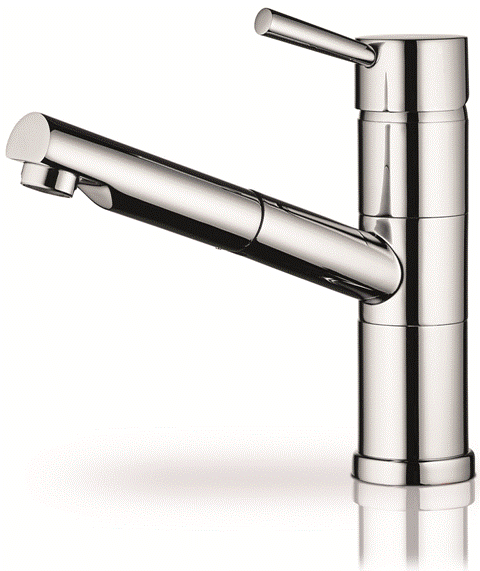 Einhebelmischer mit Festauslauf mit integriertem Geräteabsperrventil Oberfläche: Chrom mit schwenkbarem Auslauf