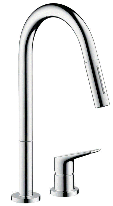 Einhebel-Küchenarmatur Hochdruck mit Ausziehbrause Umstellung von Laminarstrahl / Brausestrahl mit sBox für eine leise, leichtgängige und geschützte Schlauchführung Oberfläche: Chrom