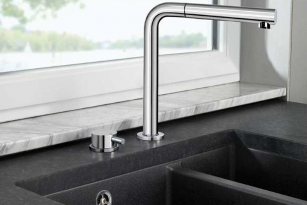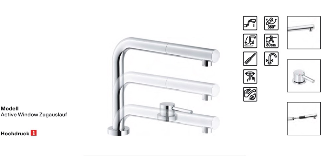 Einhebelmischer mit Zugauslauf Hochdruck Küchenarmatur / Spültischarmatur versenkbar Oberfläche: Chrom