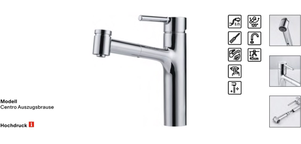 Einhebelmischer mit Schlauchbrause Hochdruck Oberfläche: Chrom schwenkbarer Auslauf 190°