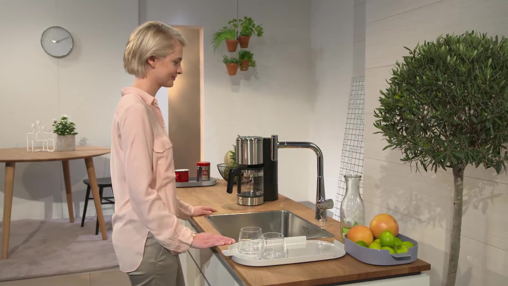 Entscheiden Sie sich für eine Spülenkombination, bestehend aus einer hansgrohe Spüle, der neuen sBox und einer entsprechenden Küchenarmatur, kommt Ihnen die Bedienung im wahrsten Sinne des Wortes entgegen. Dabei haben Sie die Wahl zwischen zwei innovativen Komfortlösungen für die Steuerung von Wasser: Die im System Ihrer Wahl mitgelieferte Küchenarmatur wird zusätzlich über eine separaten Bedienung am vorderen Spülenrand gesteuert.