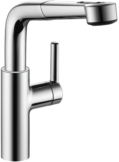 Einhebel-Küchenarmatur mit Zugauslauf Hochdruck mit Ausziehauslauf und Select-Knopf Oberfläche: Chrom