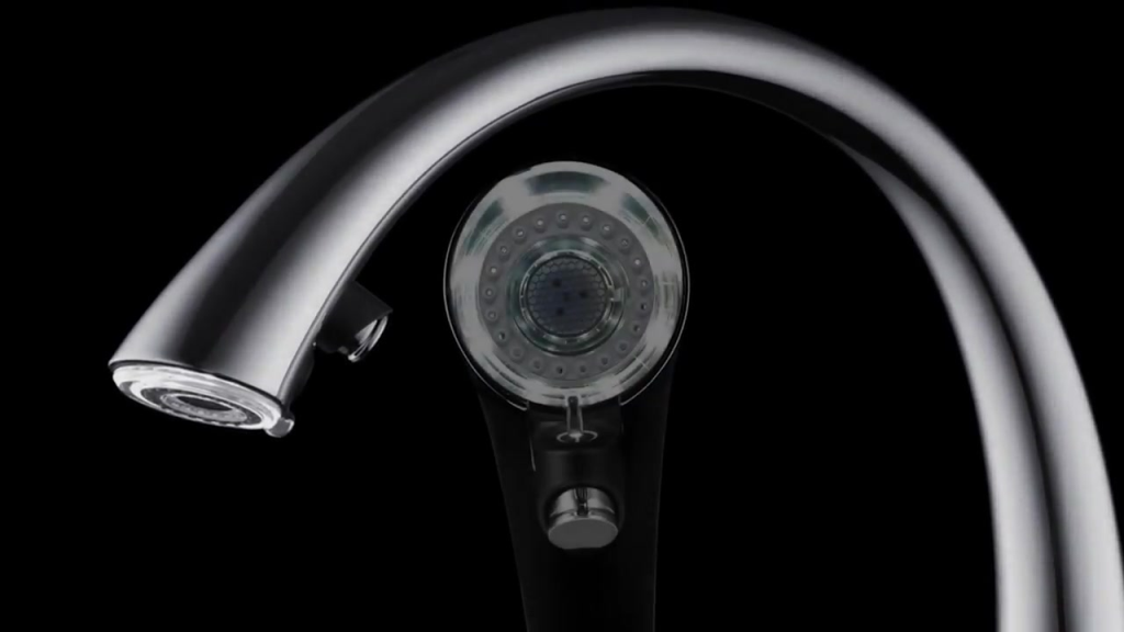 Einhebel-Küchenarmatur Hochdruck mit Select-Knopf Bedienung und Ausziehbrause Oberfläche: Chrom