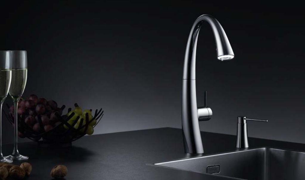Einhebelmischer mit Schlauchbrause mit LEDShine mit schwenkbarem Auslauf Oberfläche: Chrom