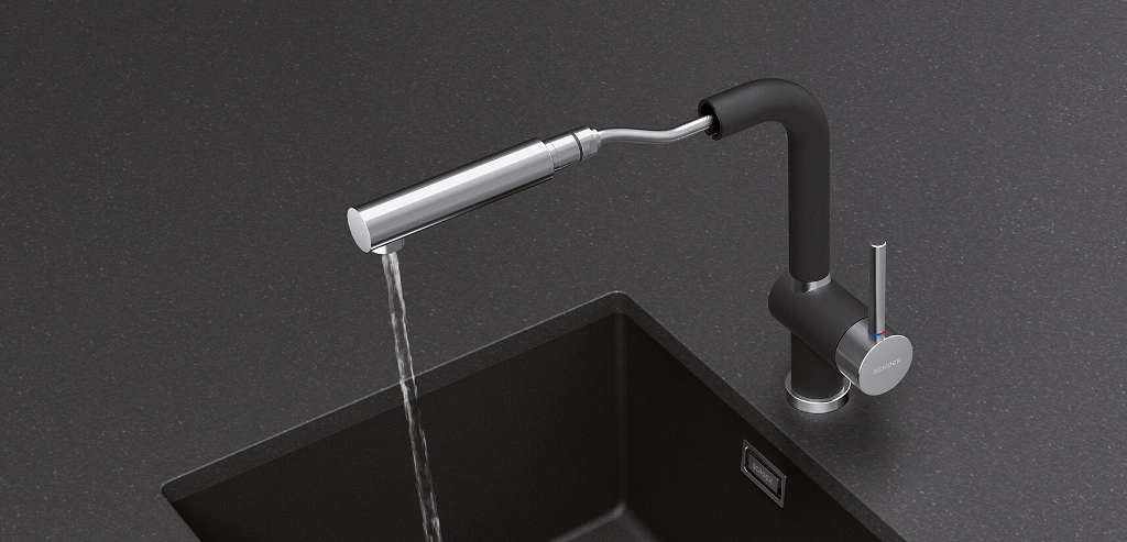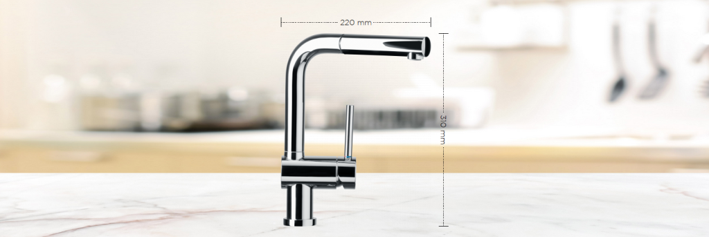 Einhebelmischer mit Zugauslauf ohne Lichtring Oberfläche: Chrom mit herausziehbarer Schlauchbrause