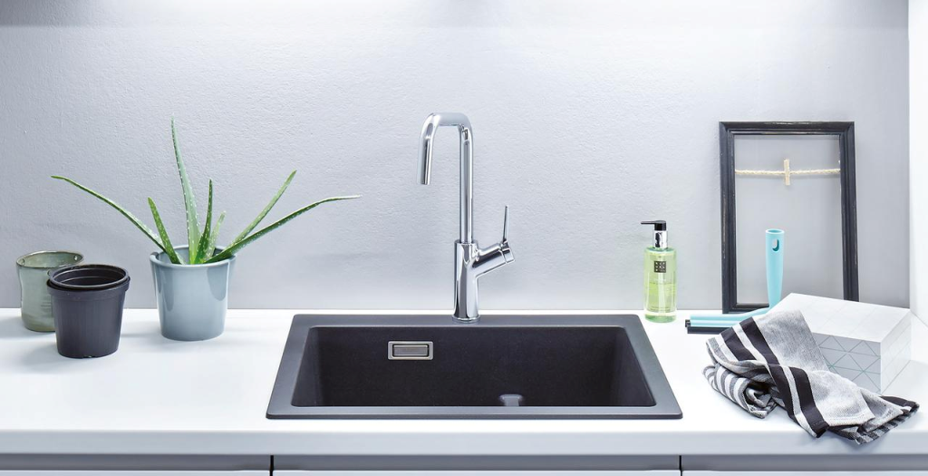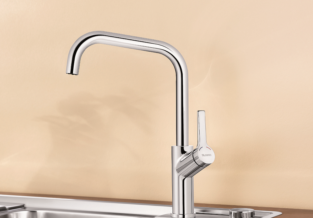 BLANCO JURENA spielt optisch mit den Stilmitteln der klassischen Moderne. Über dem kompakten, zylindrischen Armaturenkörper erhebt sich der hohe, schlanke Auslauf, der anschließend in die.Horizontale wechselt. Allerdings nicht vollständig: Eine leichte Steigung bewahrt er sich bis kurz vor Schluss. Dieses Spiel der Formen wird auch vom hoch ansetzenden, ergonomischen Bedienhebel aufgegriffen, der ebenfalls nach oben strebt. In der Praxis befüllen Sie dank der Auslaufhöhe problemlos Vasen und große Töpfe. Noch mehr Beweglichkeit bietet BLANCO JURENA-S mit herausziehbarem Auslauf. Der Clou: Die Brause ist so verdeckt angebracht, dass der Betrachter sie fast nicht wahrnimmt. Damit wirkt auch bei JURENA-S alles „wie aus einem Guss“.