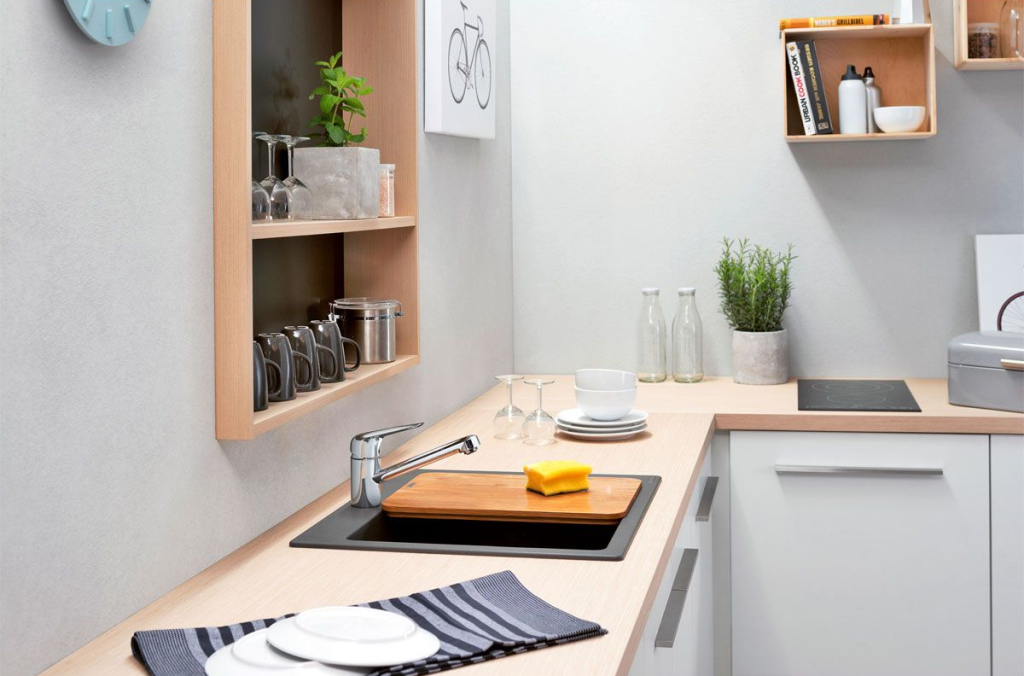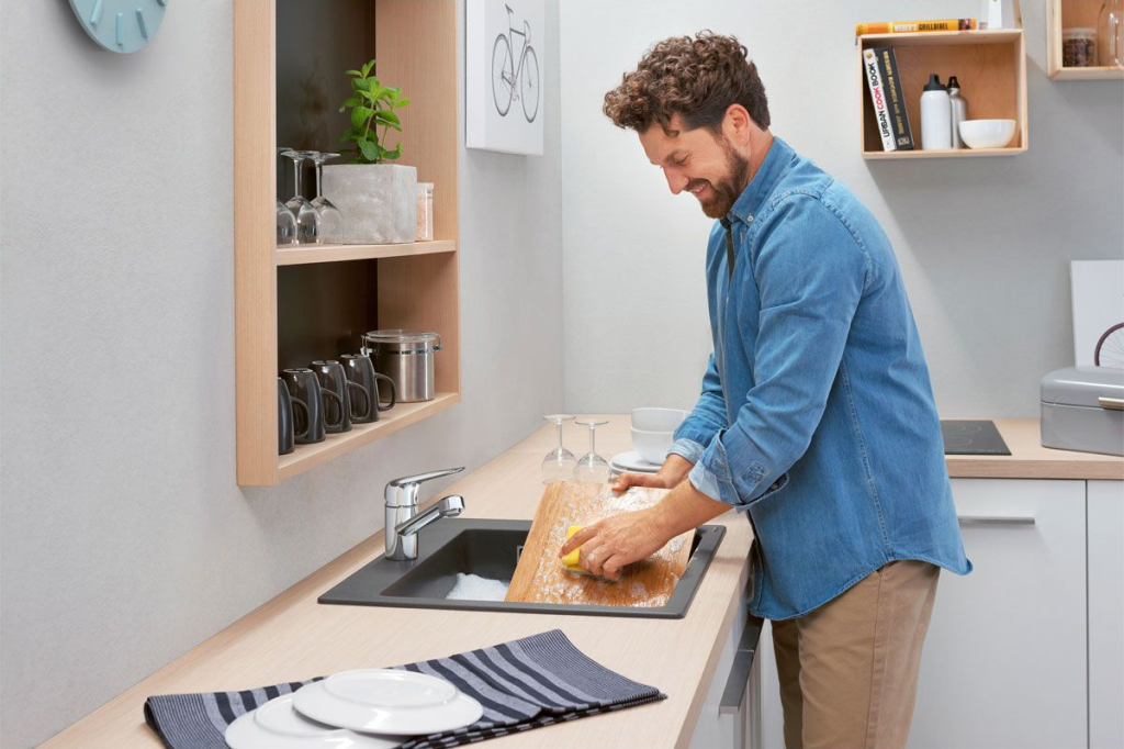Kompakte Einzelspülen bietet hansgrohe Ihnen in Beckenbreiten von 400 bis 660 mm an. Dank des seitlich integrierten Überlaufs verschwindet dieser aus dem Sichtfeld. Die Variante mit Abtropffläche eignet sich besonders, wenn Sie hin und wieder von Hand abspülen. Oder die Fläche zur Vorbereitung von Speisen nutzen möchten.