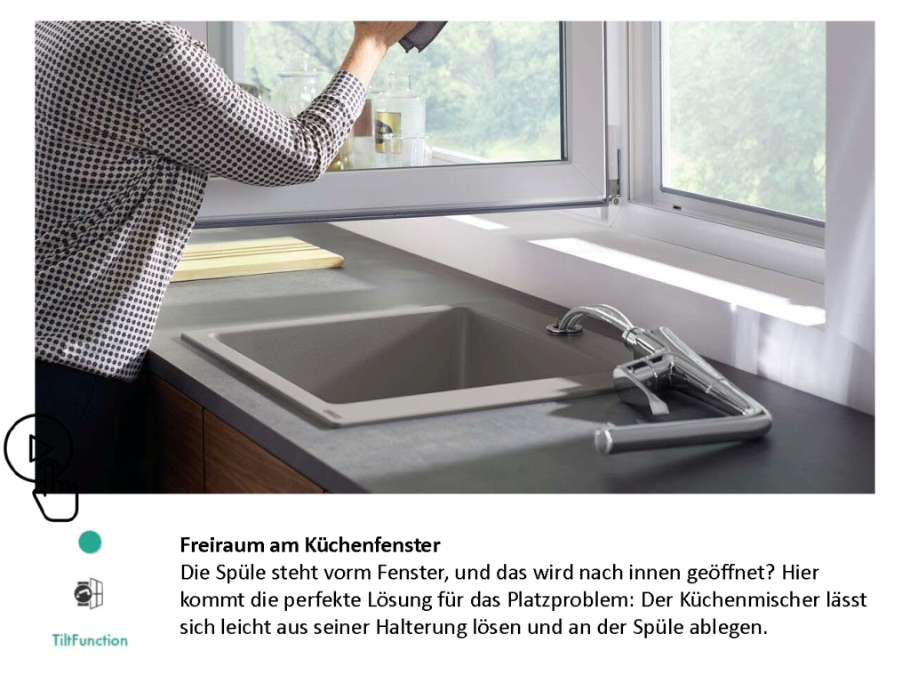Die hansgrohe Küchenarmatur montieren Sie ganz nach Belieben und den Gegebenheiten: Entdecken Sie bei uns Lösungen für die Vorfenstermontage, bei der Sie die Küchenarmatur aus der Halterung lösen und auf die Seite legen können. Bei uns finden Sie auch Küchenmischer mit einem Platz sparenden, vertikalen Pin-Griff. Zudem können Sie bei vielen hansgrohe Linien den Hebelgriff der Küchenarmatur links oder rechts wählen.