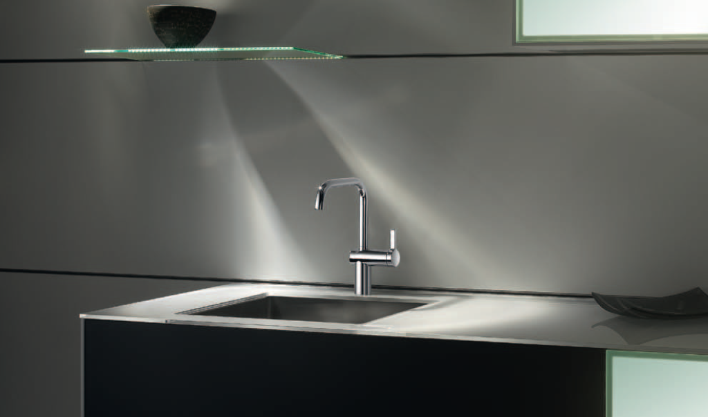 Einhebel-Küchenarmatur mit Festauslauf Hochdruck Normalstrahl Umwelttechnologie CoolStart und EcoSelection Oberfläche: Chrom
