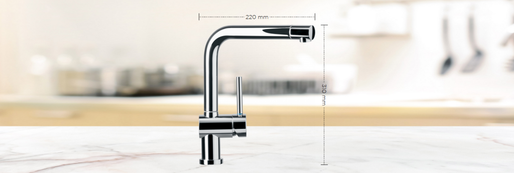 Einhebelmischer mit Festauslauf Oberfläche: Edelstahl massiv mit schwenkbarem Auslauf