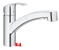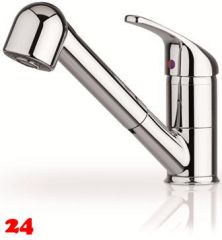 Einhebelmischer mit Zugauslauf und Brausefunktion Oberfläche: Chrom mit schwenkbarem Auslauf