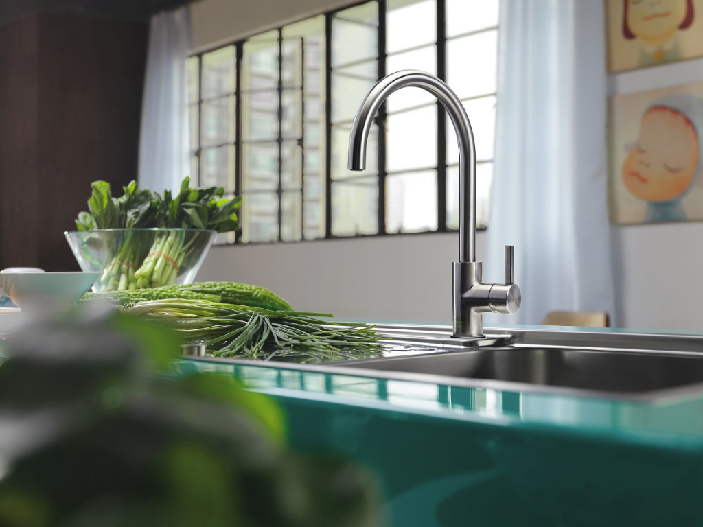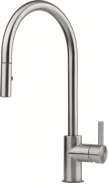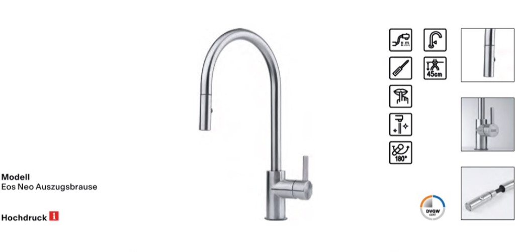 Einhebelmischer Eos Neo Zugauslauf Hochdruck mit herausziehbarer Auszugsbrause Material: Edelstahl massiv