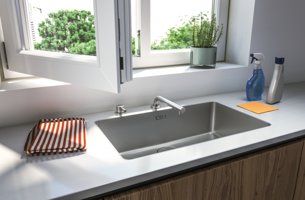 Einhebel-Küchenarmatur Hochdruck mit integriertem Geräteabsperrventil Oberfläche: Edelstahl Finish
