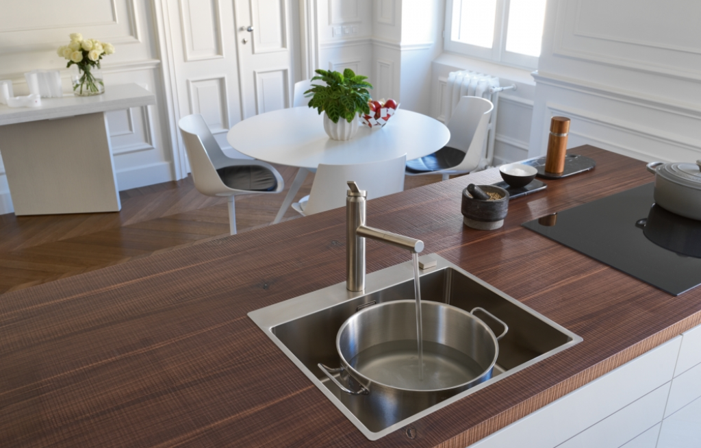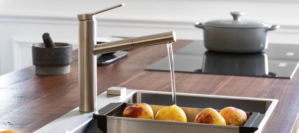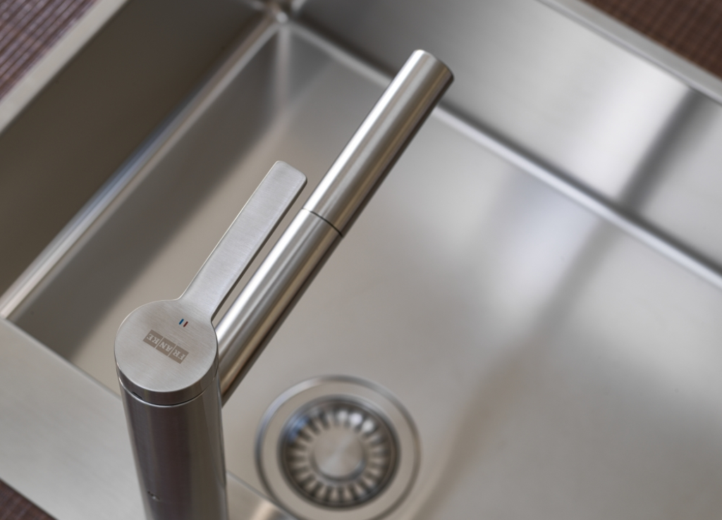 Einhebelmischer mit Schlauchbrause Hochdruck Küchenarmatur / Spültischarmatur Oberfläche: Edelstahl Massiv