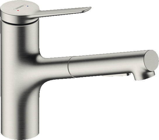 HANSGROHE Küchenarmatur Zesis M33 Edelstahl Finish Einhebelmischer 150 mit Ausziehbrause, 2jet (74800800)