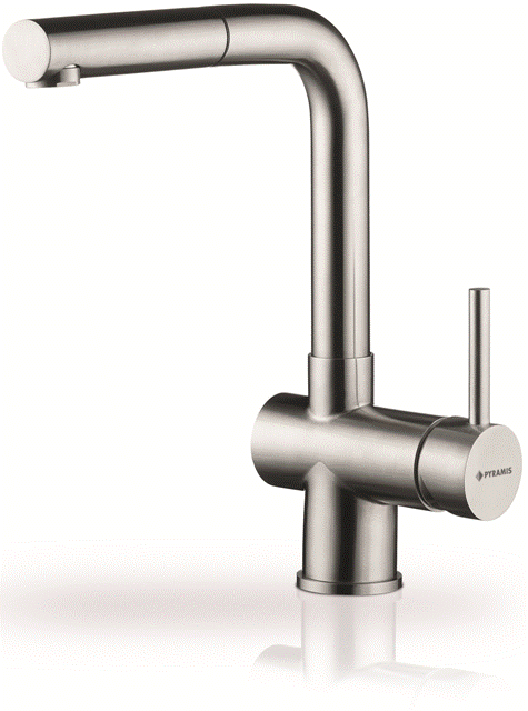 Einhebelmischer mit Schlauchbrause Hochdruck Material: Edelstahl massiv schwenkbarer Auslauf