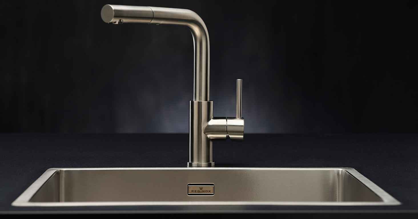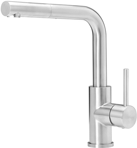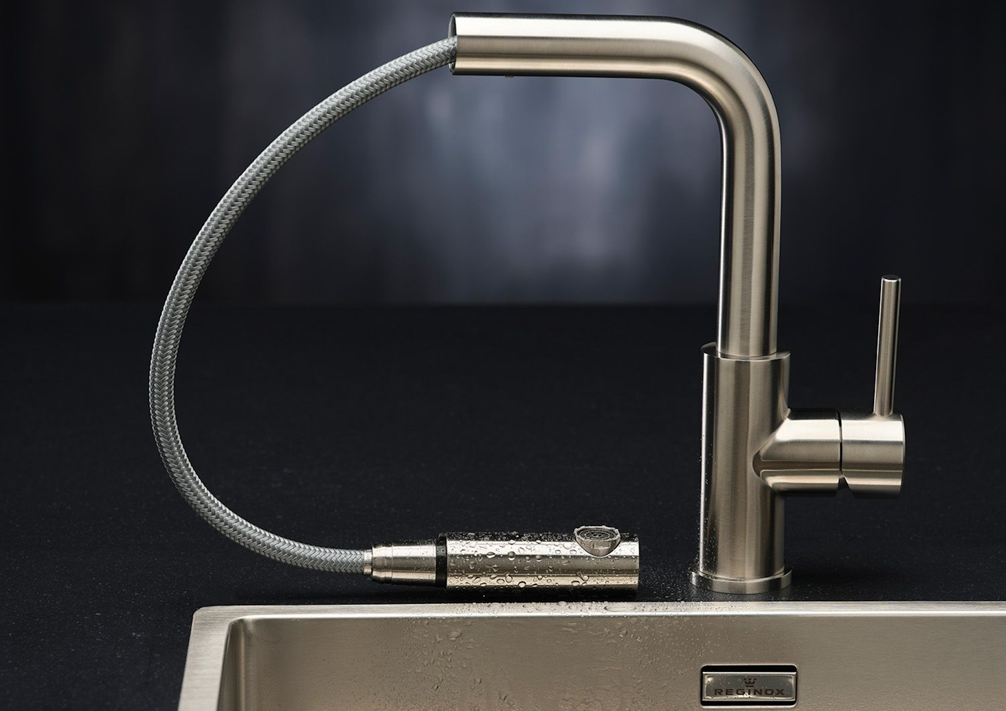 Einhand-Spültischbatterie mit Zugauslauf Hochdruck Oberfläche: Edelstahl massiv 360° schwenkbarer Auslauf