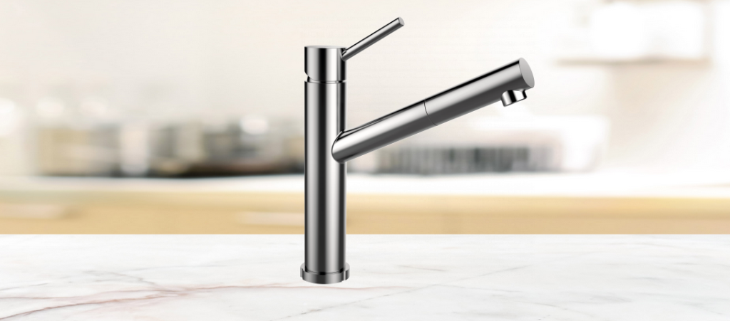 Einhebelmischer mit Festauslauf Niederdruck-Armatur Oberfläche: Chrom mit schwenkbarem Auslauf