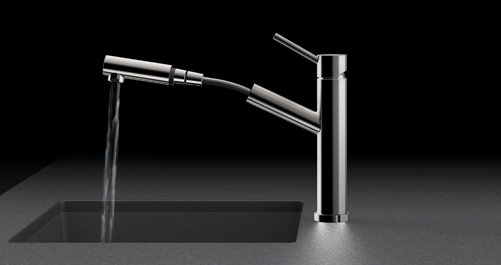 Einhebel-Küchenarmatur mit Ausziehbrause Hochdruck Umstellung von Laminarstrahl / Brausestrahl Oberfläche: Edelstahl Finish