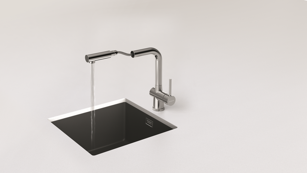 SCHOCK Küchenarmatur Sina EDM Einhebelmischer Edelstahl massiv mit Festauslauf 360° schwenkbarer Auslauf und Pendelbrause