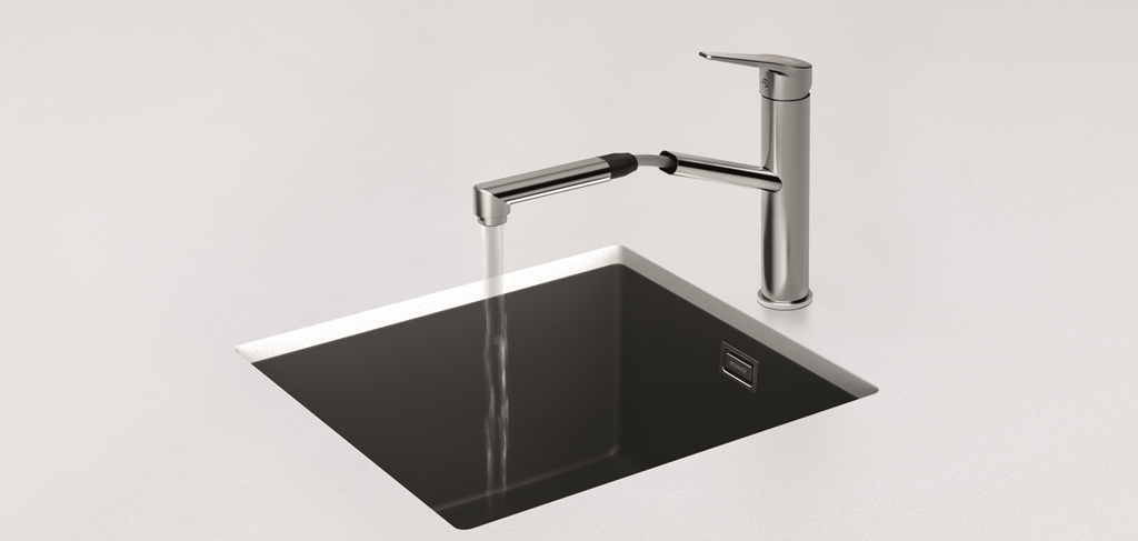 Einhebelmischer mit Festauslauf Oberfläche: Matt Black mit schwenkbarem Auslauf