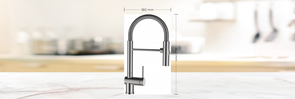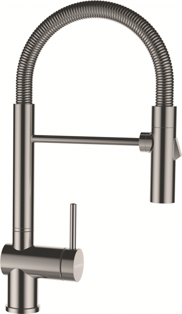 Einhebelmischer mit Pendelbrause Küchenarmatur / Spültischarmatur Oberfläche: Edelstahl massiv