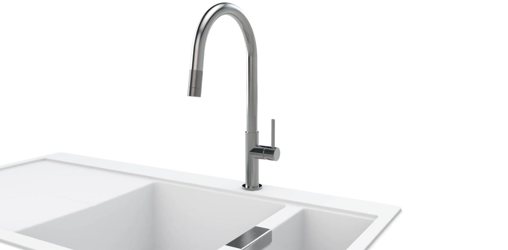 Kugelgelenk am.Brausekopf für maximale Flexibilität. Herausgezogener.Brausekopf verbleibt in entsprechender Position und wird erst durch das Schließen des Hebels automatisch zurückgezogen. Ausziehbare Armatur mit dem Anschluss einer.Festauslauf-Variante. Weder Brauseschlauch noch Gegengewicht im Unterschrank erforderlich! Ermöglicht mehr Platz für Mülltrennsysteme.
