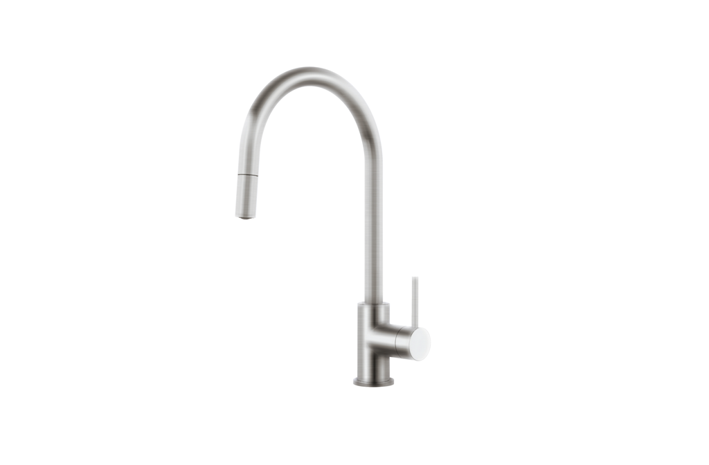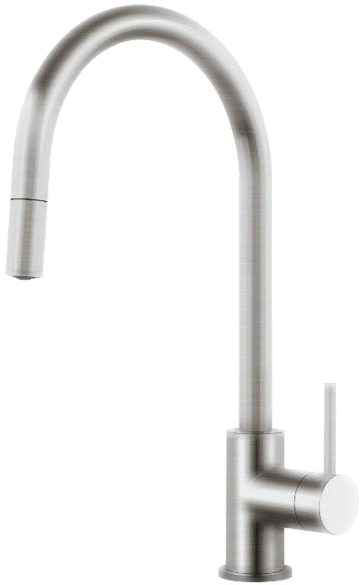 Systemceram KeraDomo Küchenarmatur Fresh Edelstahl Finish PVD Einhebelmischer mit Zugauslauf 360° schwenkbar
