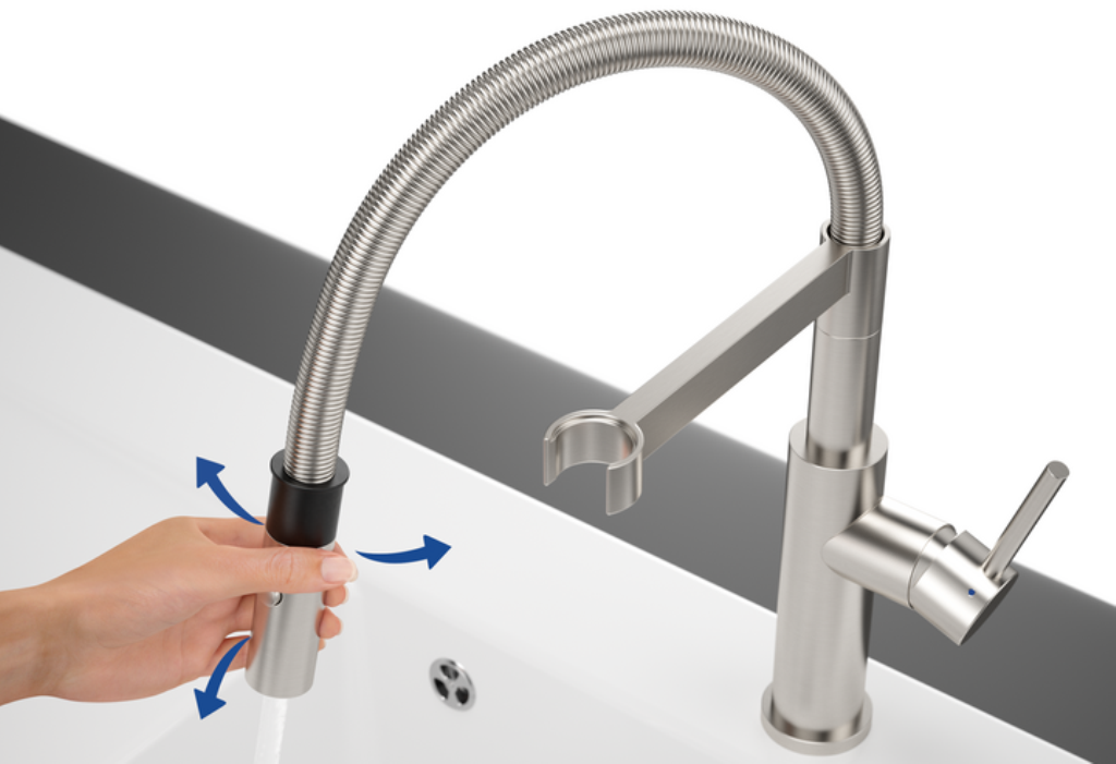 Einhebelmischer mit Schlauchbrause Hochdruck Material: Edelstahl massiv schwenkbarer Auslauf 160°