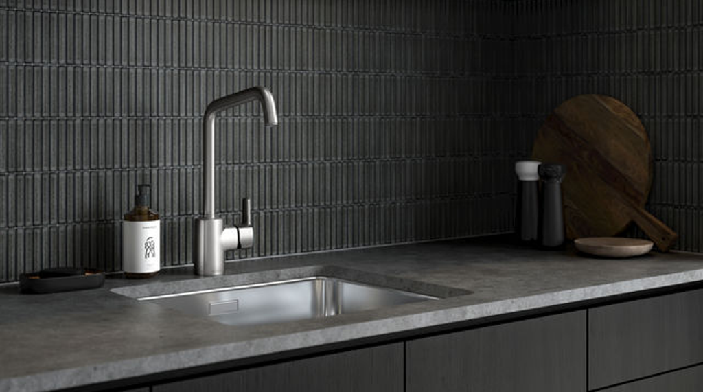 Einhebel-Küchenarmatur Hochdruck mit Select-Knopf Bedienung Oberfläche: Edelstahl Finish