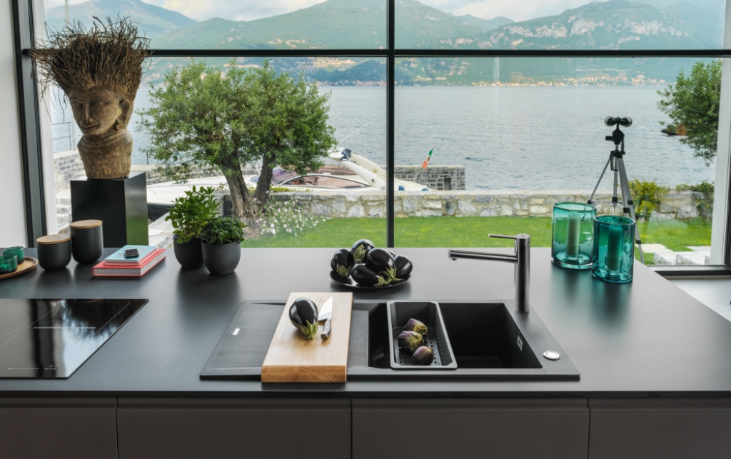 Nano Granitspüle aus Quarzkomposit Spüle mit Drehexcenter Außenmaße: 1000x510mm Spülbecken EXTRATIEF 200mm