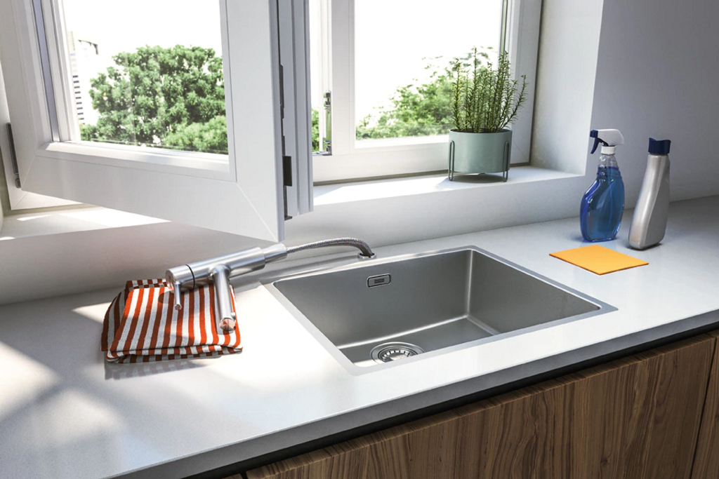 Einhebelmischer mit Festauslauf Hochdruck Reinigungsfunktion QuickClean Oberfläche: Edelstahl Finish
