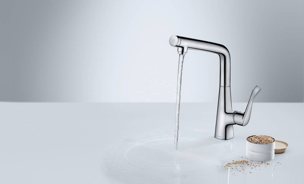Lernen Sie auch die innovative Küchenarmatur Talis Select M54 PowderSpray kennen, die mikrofeine Tröpfchen als Strahlart einsetzt. Damit verwandeln sich alltägliche Küchenarbeiten in angenehme Erlebnisse.