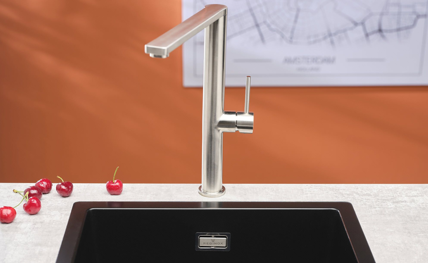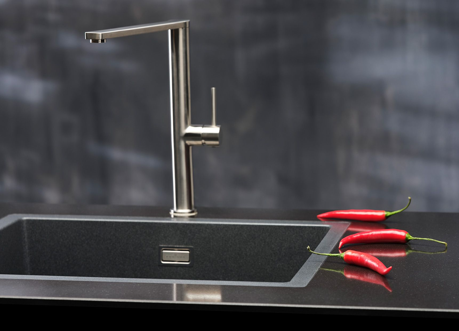 Einhand-Spültischbatterie mit Festauslauf Hochdruck Oberfläche: Edelstahl massiv 360° schwenkbarer Auslauf