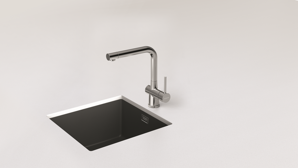 Einhebelmischer mit Festauslauf Hochdruck Material: Edelstahl massiv schwenkbarer Auslauf 360°