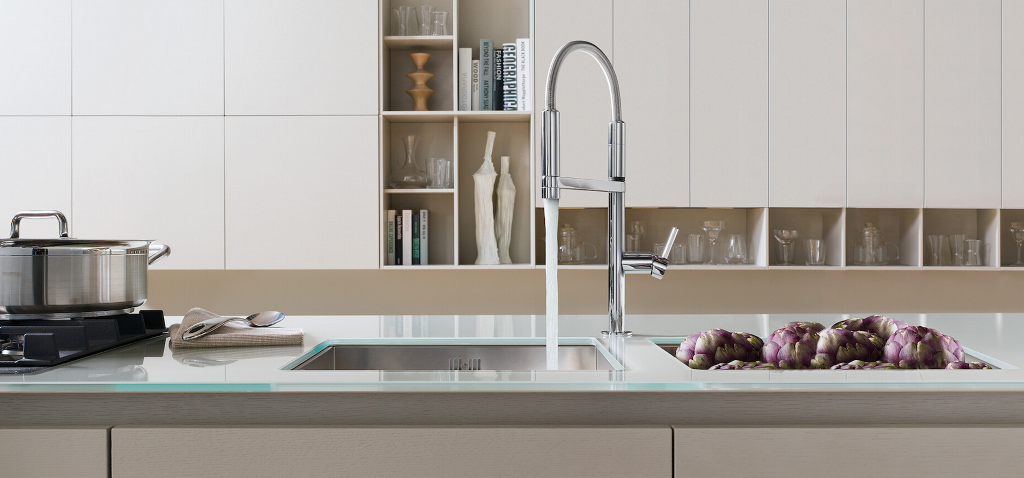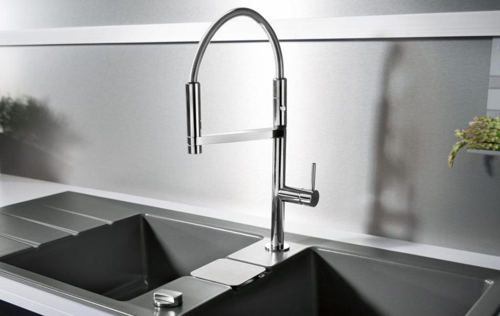Systemceram KeraDomo Küchenarmatur Offeo Schwarz PVD Einhebelmischer mit Festauslauf 360° schwenkbar