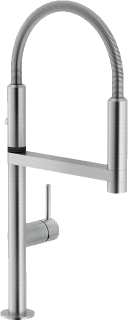 Einhebelmischer mit Pendelbrause Hochdruck umstellbar auf 2-Strahlarten per Knopfdruck Küchenarmatur / Spültischarmatur Oberfläche: Edelstahl Finish