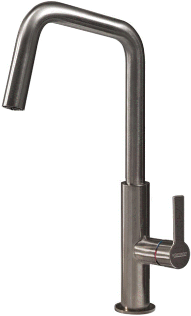 Systemceram KeraDomo Küchenarmatur Offeo Edelstahl Finish PVD Einhebelmischer mit Festauslauf 360° schwenkbar