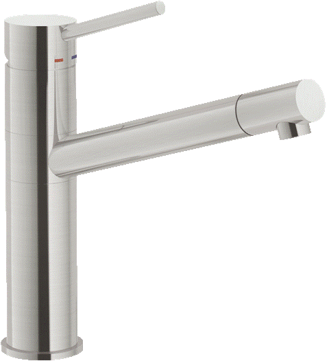 Systemceram KeraDomo Küchenarmatur Snow Edelstahl Finish PVD Einhebelmischer mit Festauslauf 360° schwenkbar