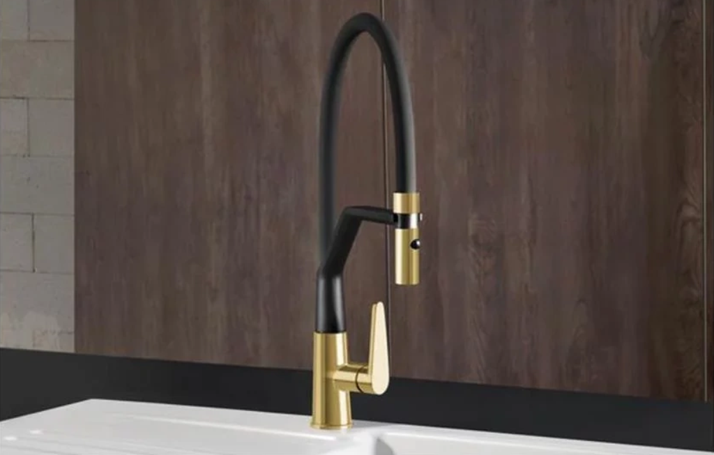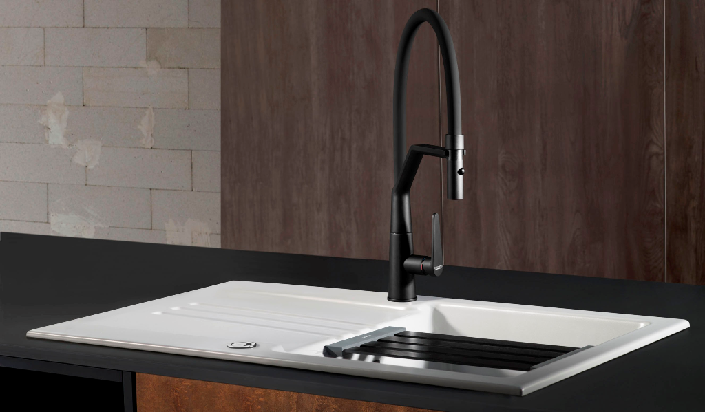 Systemceram KeraDomo Küchenarmatur Fresh Schwarz PVD Einhebelmischer mit Festauslauf 360° schwenkbar